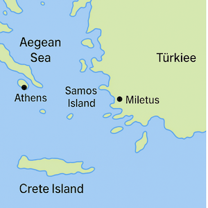 I was born on the island of Samos, which is part of modern-day Turkey. I traveled across the world, from Egypt to India, to search for truth. Later, I opened a school in Italy and taught that “Everything in the world is made of numbers!” At my school, people had to wear only white clothes, and I told them not to eat meat, food that had fallen on the ground, or even beans!