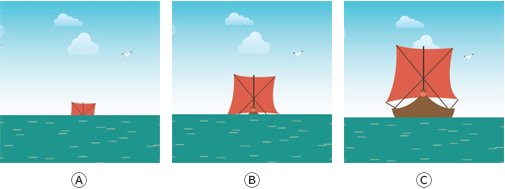 In the past, even before humans could see Earth from space, sailors knew the Earth was round, not flat, simply by observing the ships coming into the harbor. Look at the pictures Ⓐ, Ⓑ, and Ⓒ , and write why people believed Earth was round.