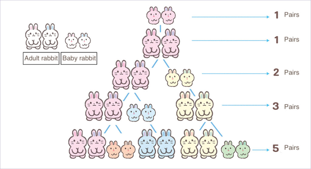 Actually, the reason I’m really famous as a mathematician is because of this fun little thing called “Rabbit Problem.” At first, there’s just 1 pair of rabbits. After 1 month, they grow up and become adults. After another month, they have baby rabbits. From then on, every adult pair gives birth to 1 new pair each month.