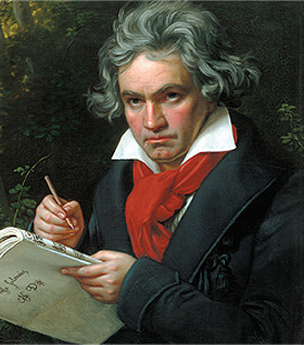 Have you ever played “Für Elise” on the piano? Or have you listened to the powerful “Symphony No. 5 (Fate)” performed by an orchestra? The music I composed is still often used today in commercials, movies, and TV shows. I was born in 1770 in Bonn, Germany. My father taught me music and made me perform piano concerts when I was young—just like Mozart, who was a famous child music genius. I became popular for my piano improvisations, where I made up music and played it right away on stage.