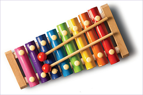 - (1) Tap the bars on a xylophone in order from the longest to the shortest and compare the sounds. If you don’t have a xylophone, watch a video of a xylophone performance. When you tap the long bar, it makes a ⑭