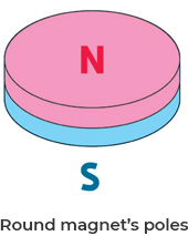 Once you have assembled the car, use the magnet on the stick to move the car forward. What magnetic force should you use? If the magnetic face of the stick is the N pole, what pole will face the car’s magnet? Complete the blanks below to figure it out. In a round magnet, the circular faces serve as the poles, with the upper and lower surfaces having different poles.