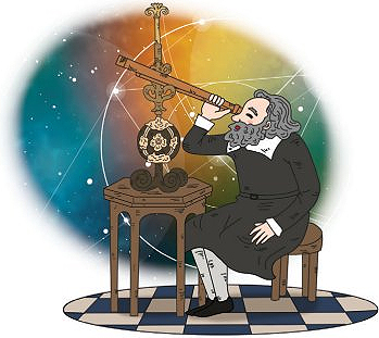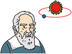 려왔어요. 나는 독학으로 망원경을 만들어서 아주 멀리 떨어져 있는 별을 실컷 보았어요. 지구의 위성인 달도 관측하고 그림으로 그렸어요. 그러다가 태양계의 목성 주위를 돌고 있는 위성 4개도 발견했지요. 내가 지구에만 위성이 있는 게 아니라 목성에도 위성이 있다 고 하자 사람들은 말도 안 된다고 했어요. 당시 사람들은 “우주의 중심은 지구이고 지구를 중심으로 천체(우주에 있는 모든 물체)가 회전한다.”고 굳게 믿었거든요. 목성에도 위성이 있다는 것은 이 세상의 중심이 지 구라고 한 성경 말씀을 거스르는 주장이었어요. 세상은 발칵 뒤집혔고, 나는 종 교 재판을 받았어요. 나는 누구일까요?