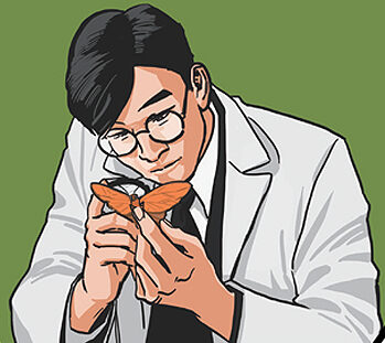 한번은 지리산에 채집 여행을 갔다가 처음 보는 작은 팔랑나비 한 마리를 발견하고 그 나비를 잡기 위해서 3시간이 넘는 시간 동안 쫓아다녔지요. 그 과정에서 수도 없이 넘어져 온몸이 피투성이가 됐지만 끈기 있게 나비를 쫓아 마침내 잡을 수 있었어요. 그 나비에, 지리산에서 처음 발견되었다고 하여 ‘①
