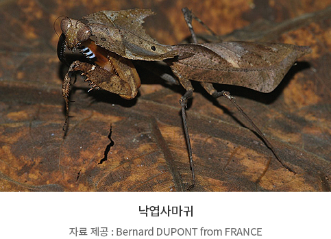 난초사마귀, 낙엽사마귀, 잎사마귀가 사는 곳과 사마귀가 먹는 먹이를 생각해 보고 이와 같은 색과 모양을 가지고 있을 때 좋은 점을 써 보세요.