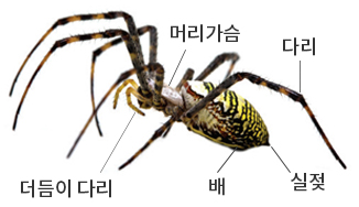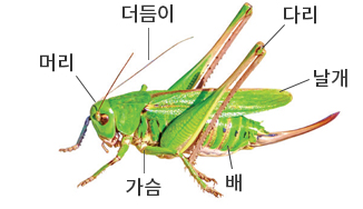 거미는 벌, 메뚜기 등의 곤충과 비슷하게 생겼지만 과학자들은 거미는 곤충이 아니라고 말해요. 벌과 메뚜기를 관찰하여 곤충의 공통점을 쓰고, 거미와 곤충의 차이점을 쓰세요.