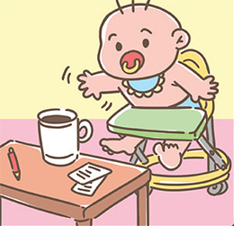 My baby sibling is starting to sits in a high chair and eat baby food. But the baby often drops the spoon and bowl. It happens so often that picking them up has become tiring. Yesterday, the baby reached for my ceramic cup. We all shouted, “No!” at the same time. The cup almost broke!
