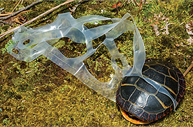 Turtle Entangled in Plastic