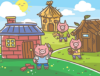 Once upon a time, three little pigs left their home and each built a house. The first pig built a house out of straw. The second pig built a house out of wood. The youngest pig built a house out of bricks.