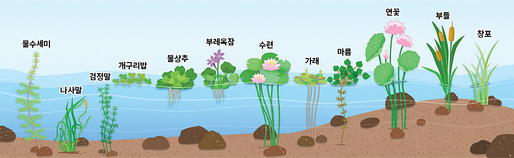이 부분을 클릭해서 퀴즈를 풀어주세요!강과 연못에 사는 식물