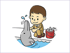 우리는 동물을 좋아하는 사람들이 부러워하는 직업을 가졌어요. 엄마 잃은 아기 호랑 이를 키우고 돌고래를 돌보는 등 동물과 항상 함께하거든요. 우리는 보통 한 사람이 한 종류의 동물을 담당해요. 아침에 동물들을 만나면 밤새 동물들이 아프지는 않았는지 확인하고 사료를 주거나 동물 우리를 청소해요. 동물들이 잘 지낼 수 있도록 훈련 을 시키거나 동물들이 사는 곳을 야생 환경과 비슷하게 만들려고 애쓰기도 해요.